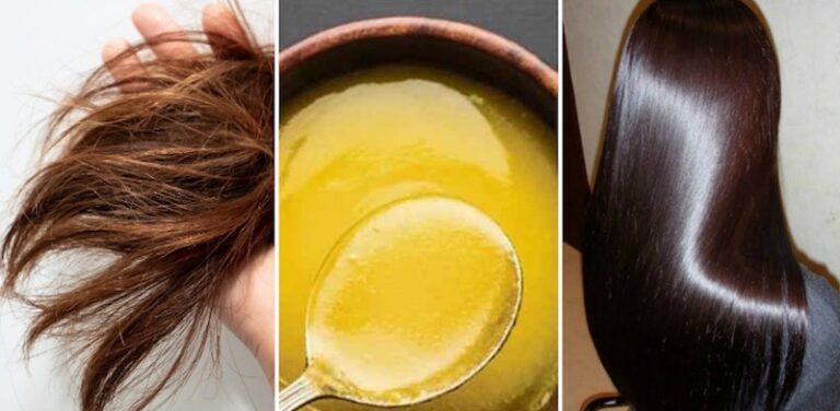 8. Ghee with Olive Oil: Clarified butter or ghee adds ample moisture to dry hair and when you mix olive oil with ghee, it’s a double boost of hydration. Mix 4 tbsp of ghee with 2 tbsp of olive oil. Apply all over hair and scalp, keep for one hour and rinse with a mild shampoo.
